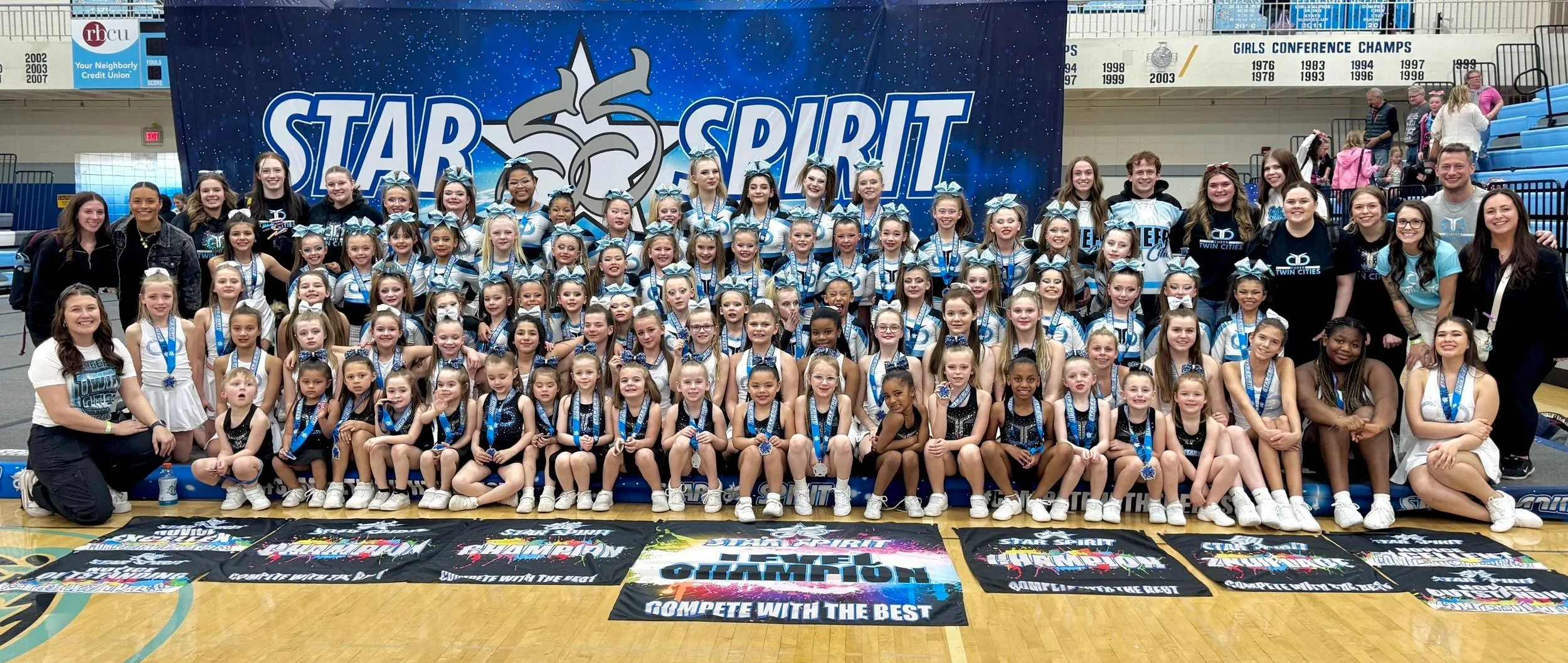 Our Novice All Star teams are a great introductory training program that focus on the skill building, technique, and performance factors needed in competitive cheer! They will learn and compete a routine towards the end of their season.